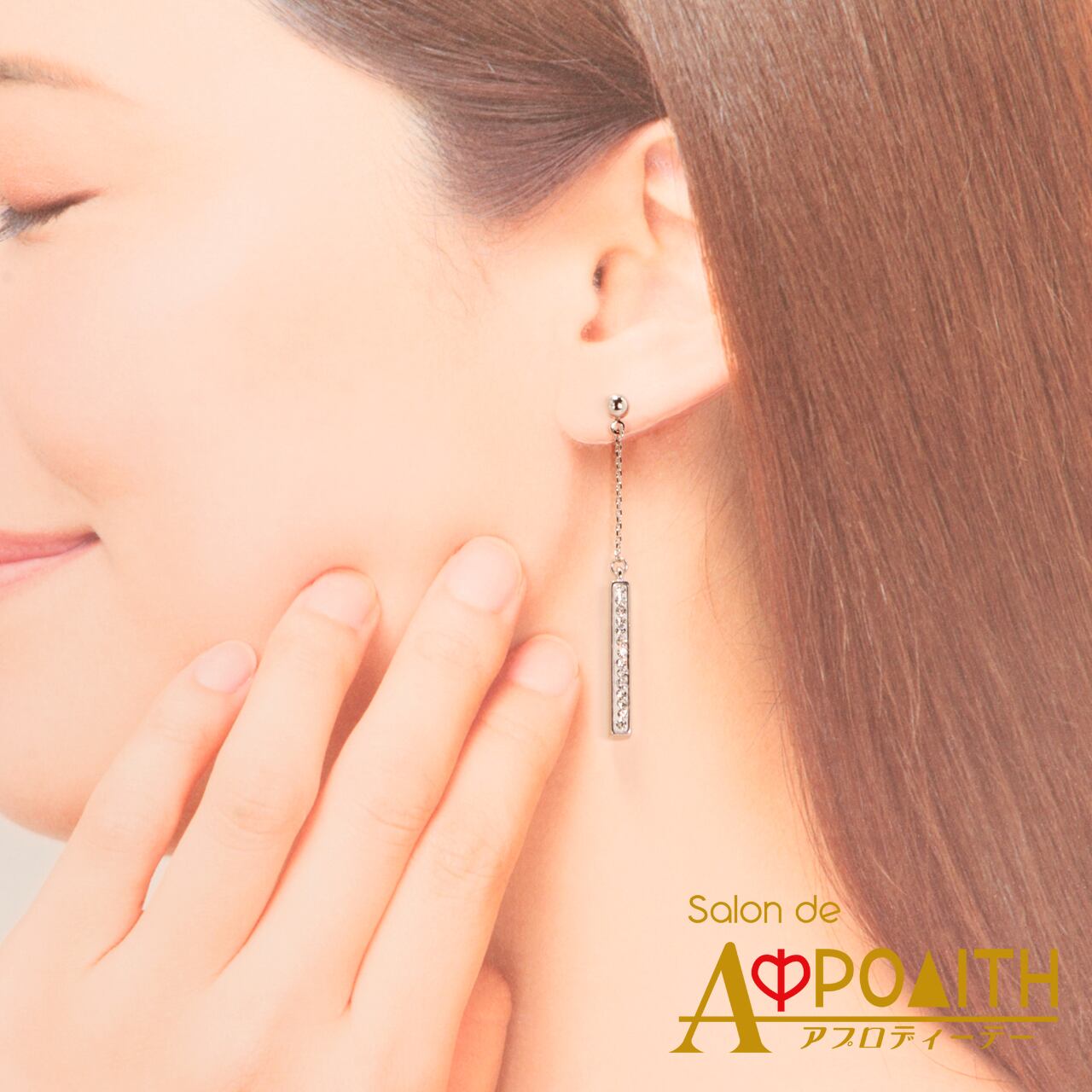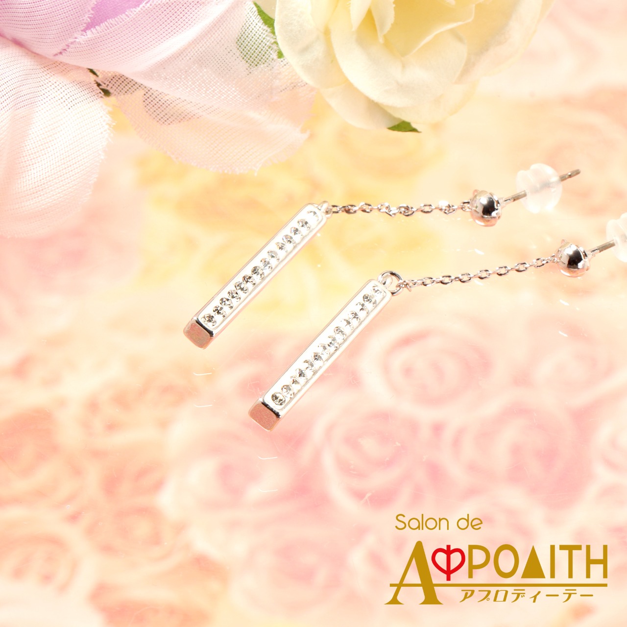 双方のストーンが揺れるたびに交互に輝くロングピアスです。