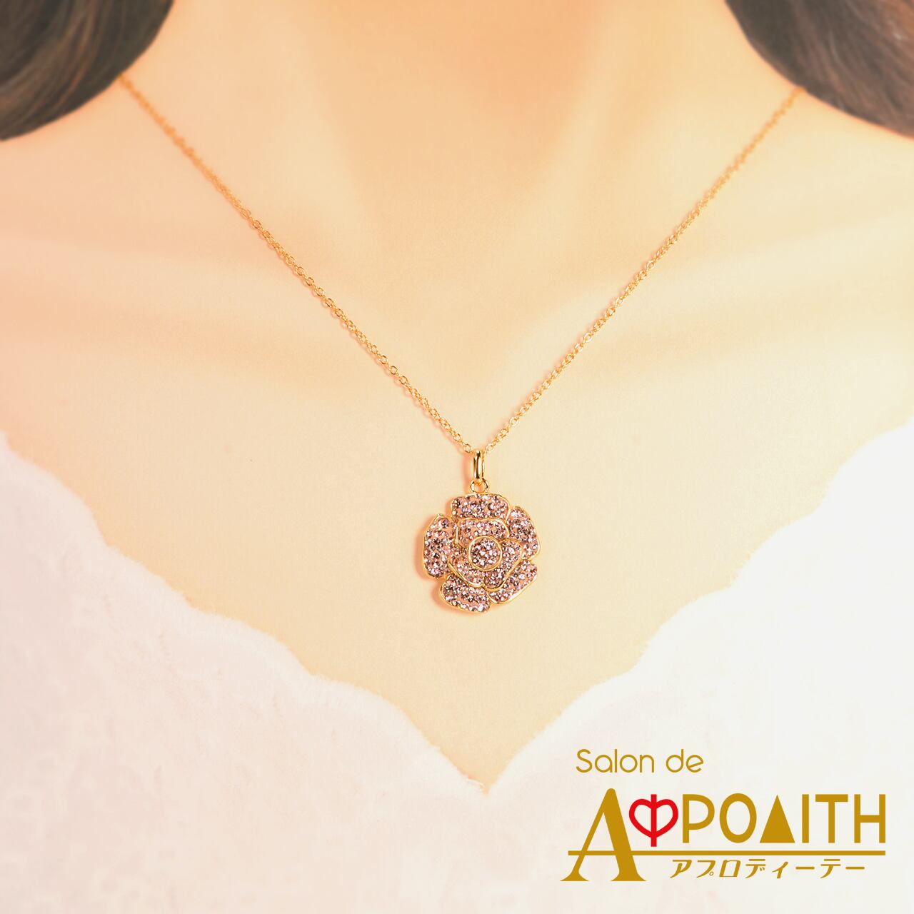 バラのチャーム花びら一枚一枚がキラキラ輝き、華やかさを引き出すペンダントです。