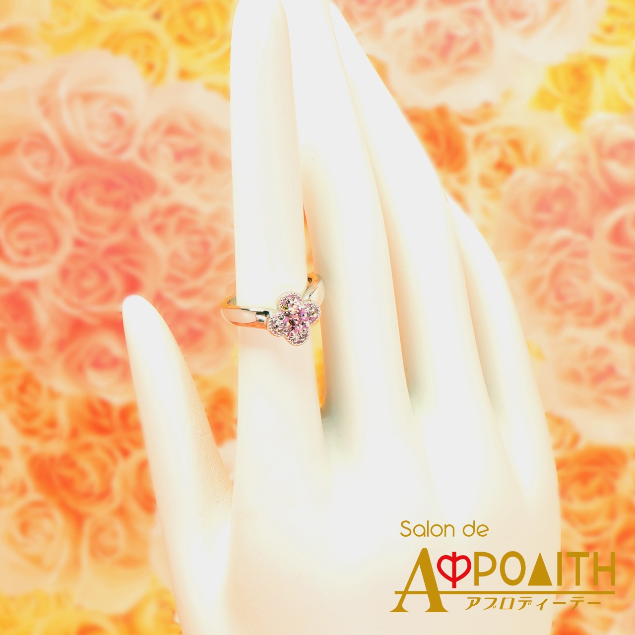 小さなフラワーモチーフがかわいい、V字型リングです。
